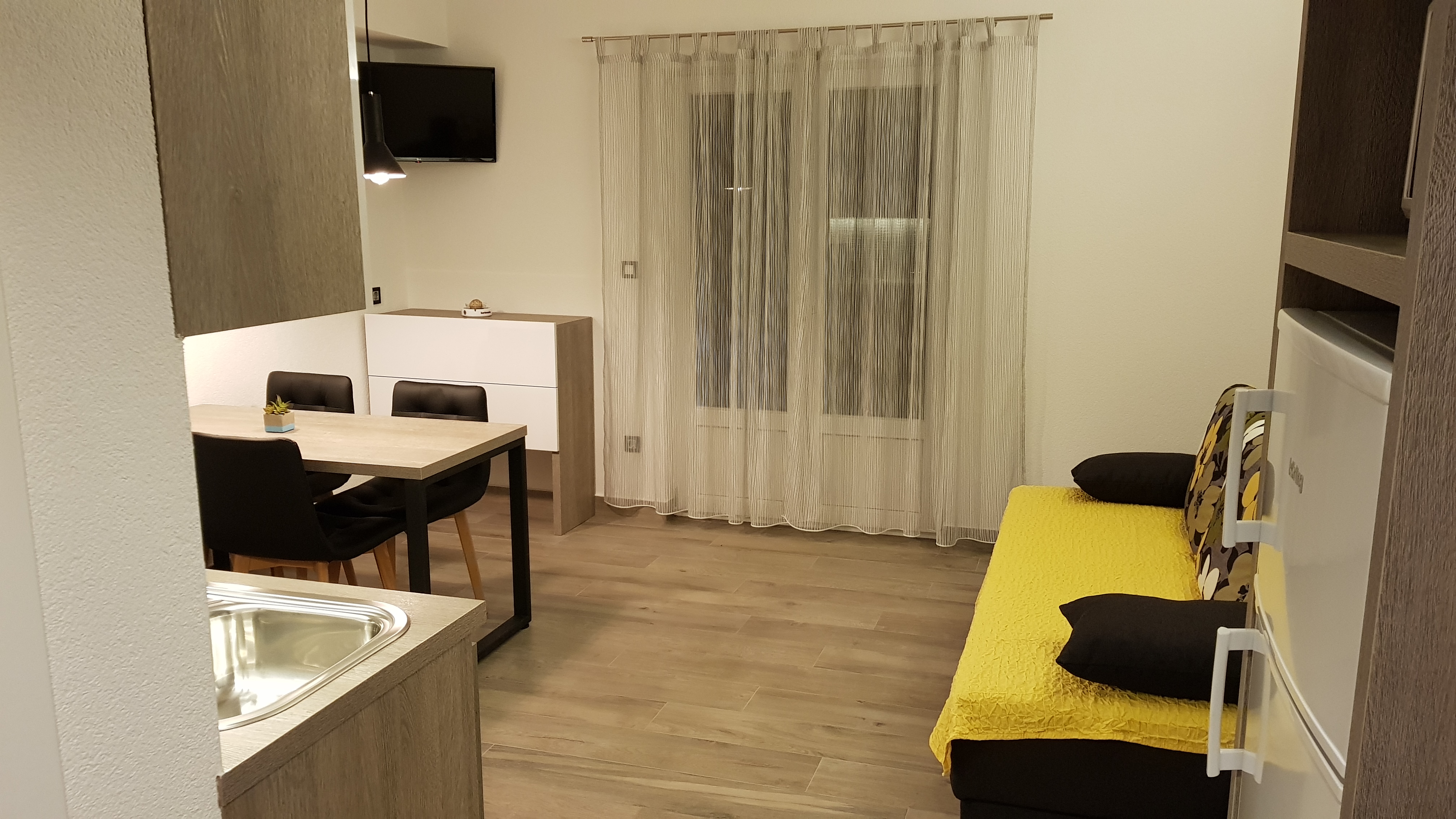 Großzügiges Ferienwohnungen (cca. 45m2) für zwei Personen mit hochwertige Austattung, zwei Balkonen, zwei Sat-TV, Kücheneinrichtung wie "Zuhause" (Kühlschrank mit Gefrierfach, Spülmaschienen, Mikrowelle, Kaffeemaschine, Ceranfeld), zwei Klimaanlagen (auch mit Heizung für die Vor oder Nachsommer Abende), eigene Parkplatz vor dem Haus.